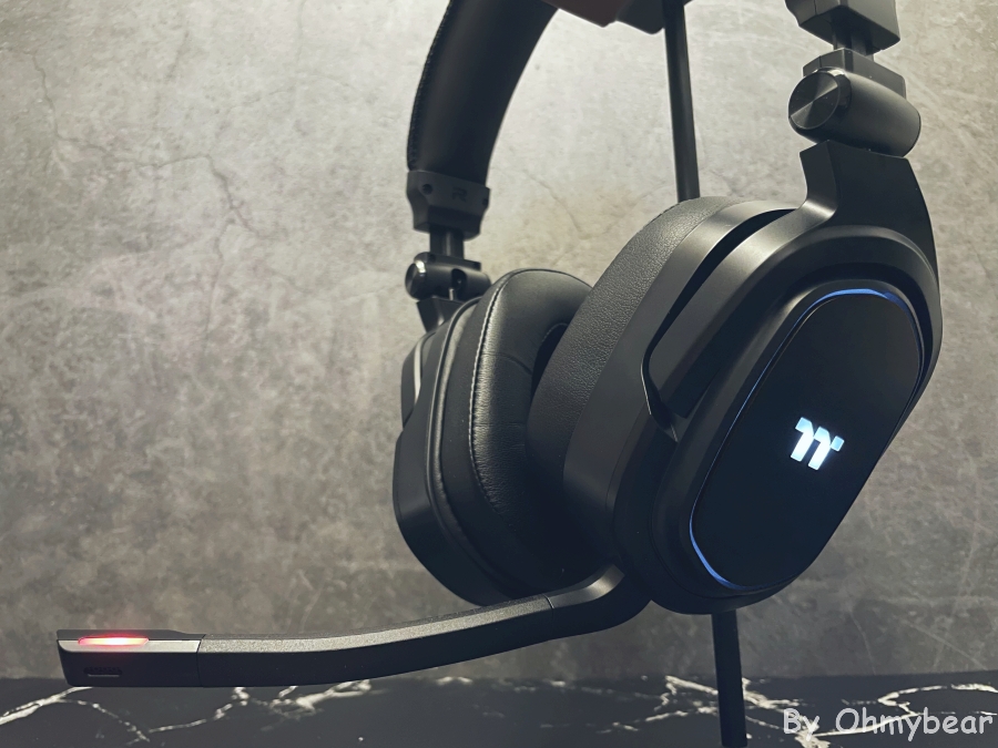 回到耳機外觀部分,耳罩上有TT字樣,RGB燈效則是耳罩為為一圈及中間的LOGO皆有,不過無線版H5可能是受限於電力,RGB燈效只能單色RGB切換,不具備彩虹燈效。