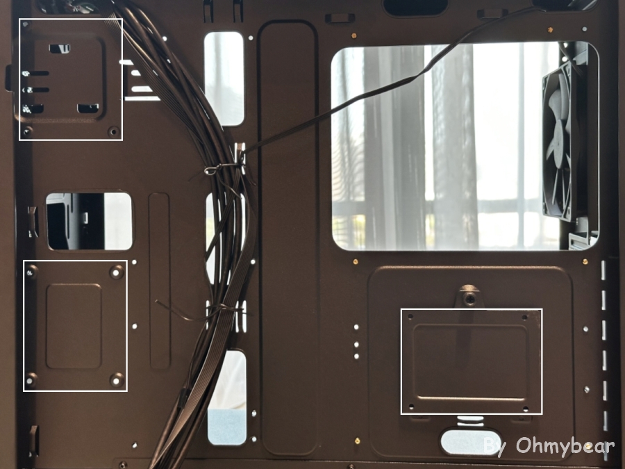 背板深度約3cm還算餘裕,走線開孔數量也足夠,底部則為硬碟架及電源倉空間。